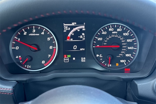 Moving on to more general interest items, shame on you, Subaru, for not giving us a boost gauge! I know where it should go, at the top of the panel between the analog gauges where the “mpg gauge” is now. I think the “mpg gauge” might actually be a vacuum gauge, so maybe it shows boost, but a direct calibration is necessary for any turbocharged engine. No one driving this kind of car cares about fuel consumption enough to look at the “mpg gauge.” There’s also a “cumulative mpg” readout that seems to be applied when you reset the trip odometer. This is somewhat useful and shows I’m getting about 28 mpg on the average, 31 highway, which for this lively a car is great! (Although, it’s premium fuel so it’s more expensive per gallon than most cars need).